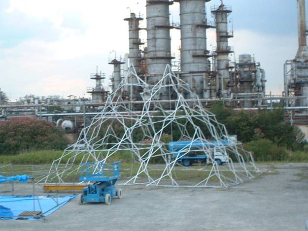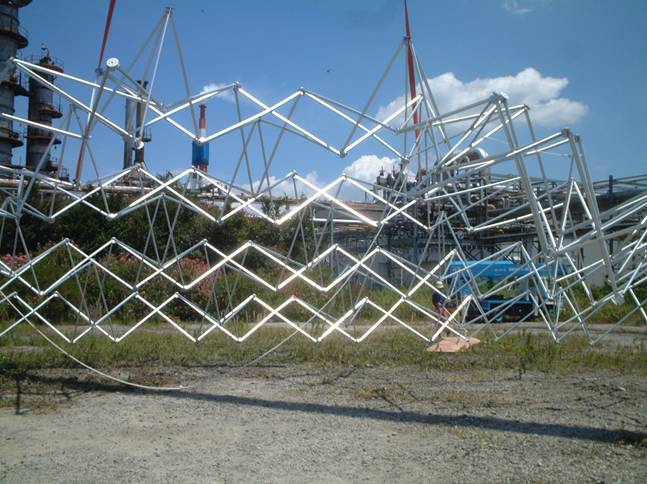 阿竹式展開構造Wピラミッドタイプ 組み立て展開試験 2004.7.16